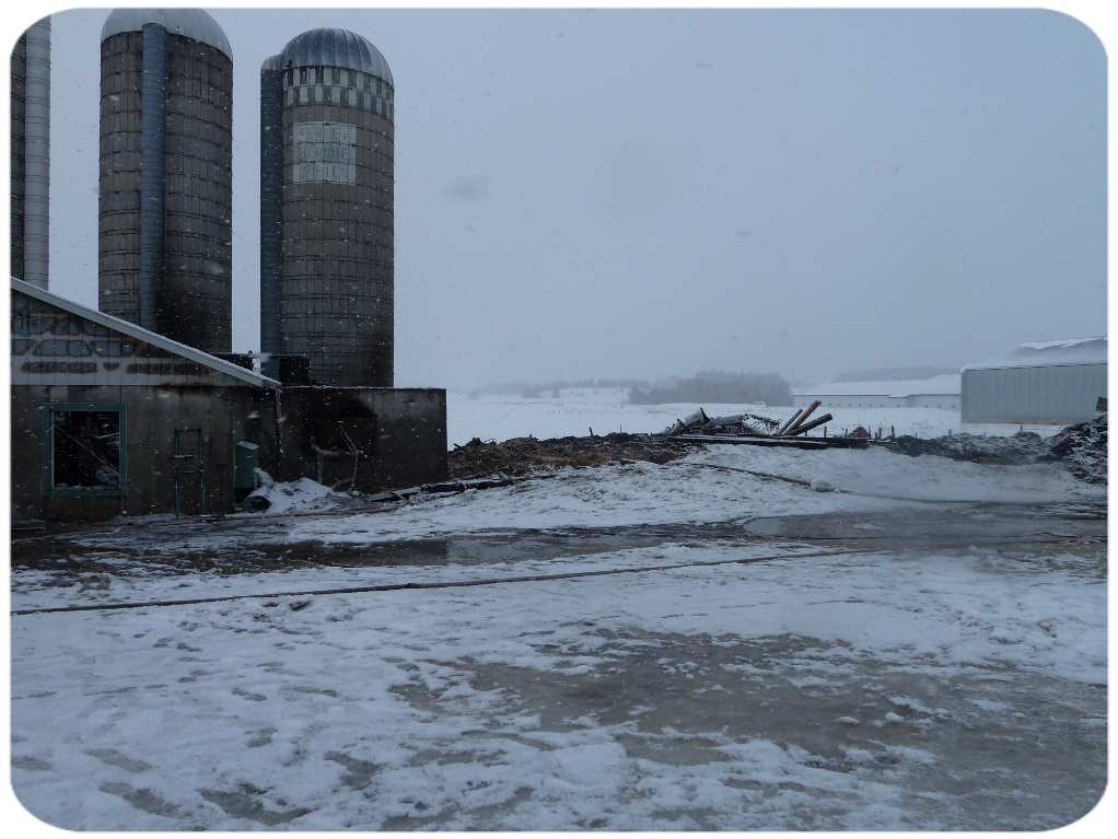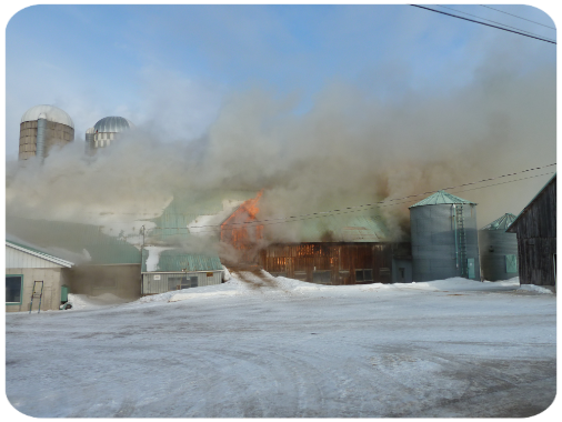 À 8:15 du matin un incendie touche la ferme et détruit complètement la grange étable, le premier bâtiment de ferme des ancètres Bérubé et endommage la vacherie construite en 1996. La presque totalité des animaux sont rescapés et relogés chez des voisins.