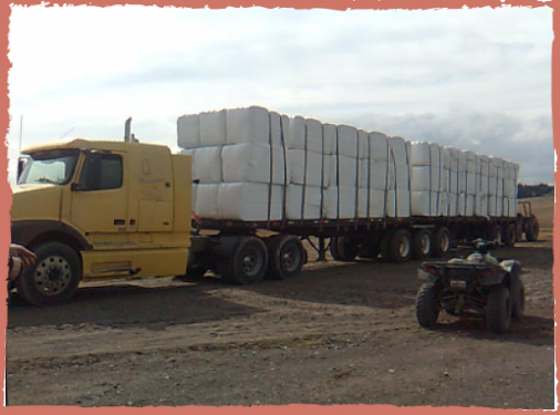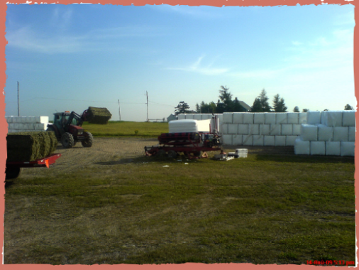 Nous pressons annuellement près de 6000 balles que nous enrobons individuellement sur le site d'entreposage, pas de manipulation inutile des balles une fois enrobées. Elles seront chargées sur les camions avec minutie pour ne pas endommager le plastique.