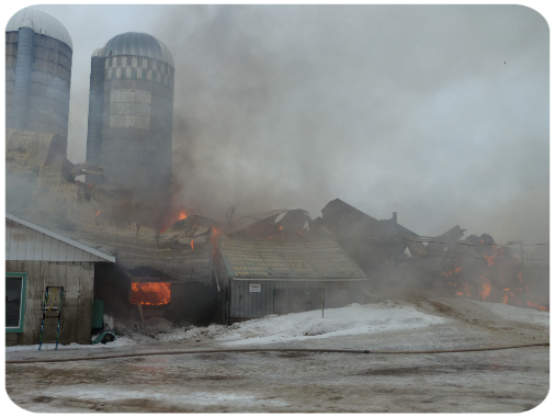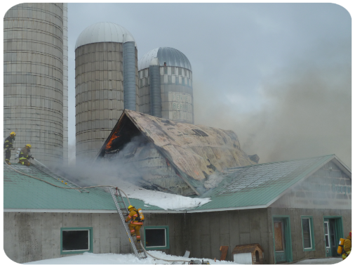 À 8:15 du matin un incendie touche la ferme et détruit complètement la grange étable, le premier bâtiment de ferme des ancètres Bérubé et endommage la vacherie construite en 1996. La presque totalité des animaux sont rescapés et relogés chez des voisins.